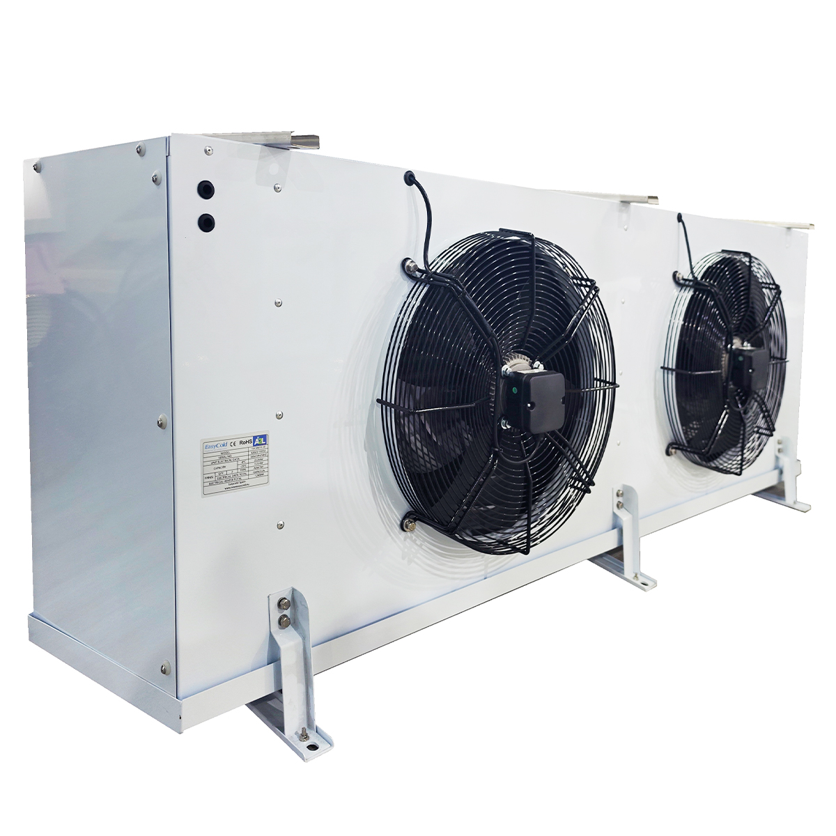 Defrost heating:Provided by stainless steel resistors sheathed in aluminum tubes located in the finned package and drain pan. It facilitates the removal and replacement of the resistance in very little space between the evaporator and the chamber wall.